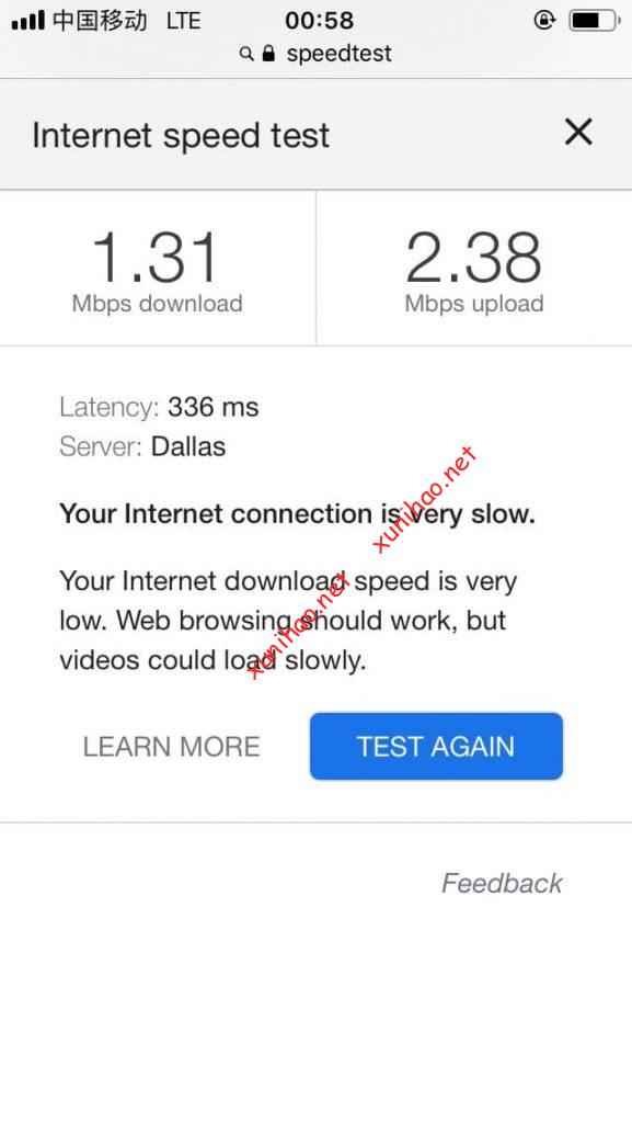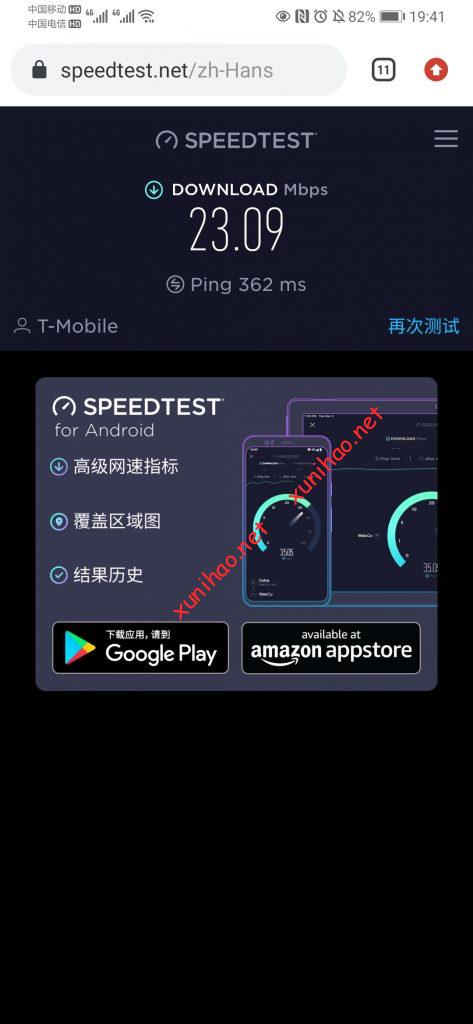 如下图是Tmobile流量卡在我的iphone 6老手机上测出的速度。