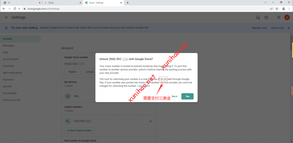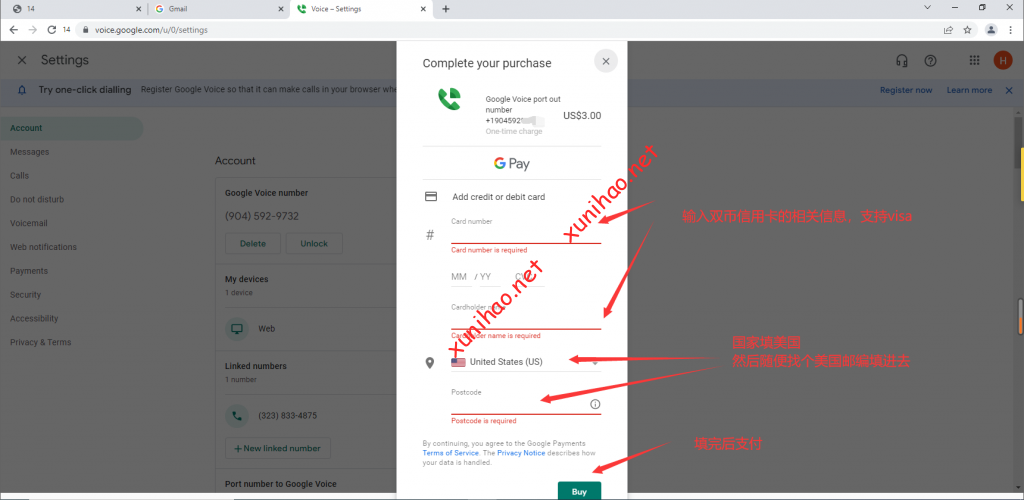 将Google voice号码(或其它通讯公司的美国电话号码)转出时
