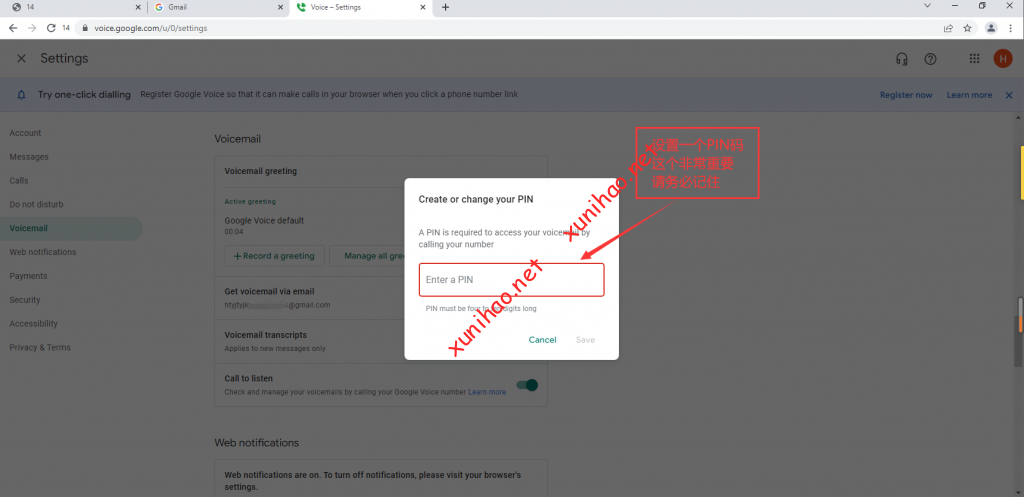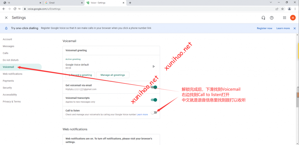 左侧主菜单找到Voicemail – Call to listen 这个选项,打开