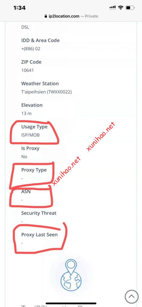 Usage Type最重要: ISP/MOB就是指WIFI真实IP或手机真实IP,DCH则指的是该IP为Data Center Hosting(机房主机)