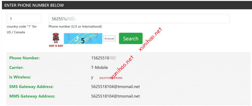 首先通过freecarrierlookup.com查询号码,Is Wireless选项为Y,代表是移动无线号码
