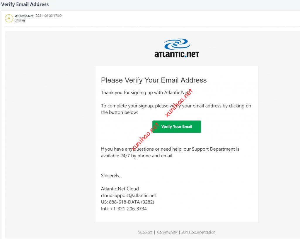 经过提交信用卡账单信息后,整个免费一年的atlantic VPS主机账号就注册成功了,等着邮箱收到atlantic的欢迎邮件,几分钟就收到了。