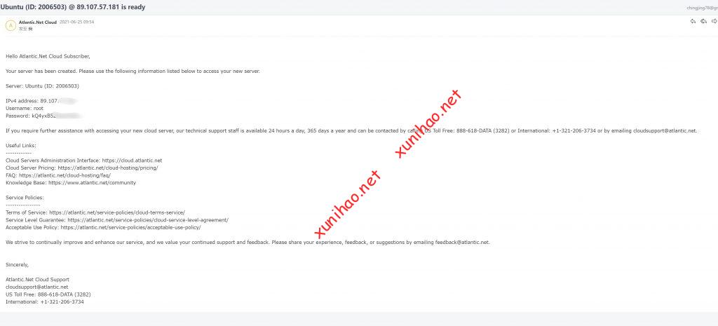 atlantic仍然会发一封邮件告知新操作系统的root及密码信息等 。