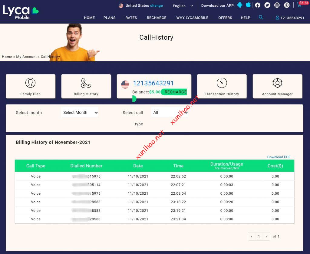 Lycamobile账号里面还可以查到通话清单,余额等。打 *611# 也可以查余额。