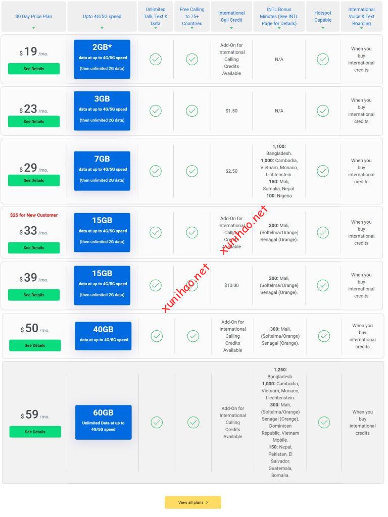 而且即使将来去到美国,也随时可以将套餐升档至19/29等。获取在美国当地的流量包。