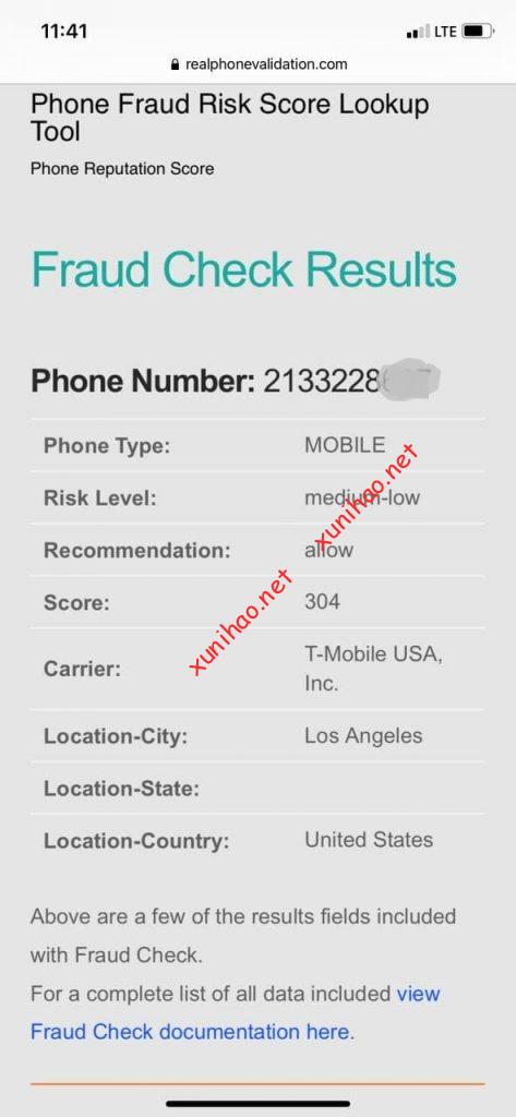 之前非美国原生IP无法查询美国号码诈骗分数网站 https://realphonevalidation.com/fraud-risk-scoring-for-phone-numbers/