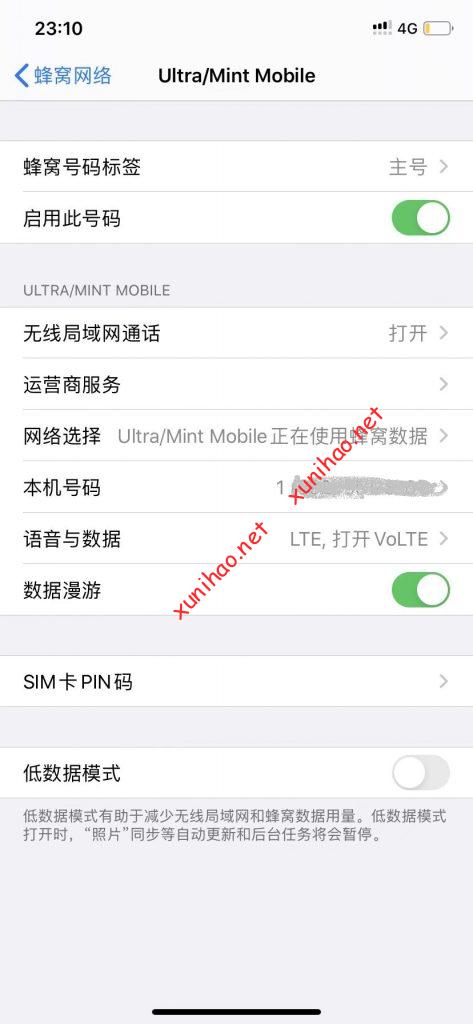 除了上述支持wifi calling的美国卡外,另一张卡需要打开数据上网功能