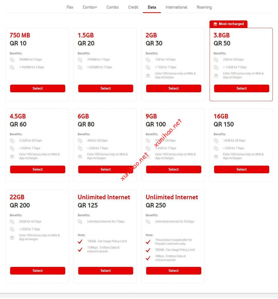 沃达丰套餐详情:https://www.vodafone.qa/en/recharge