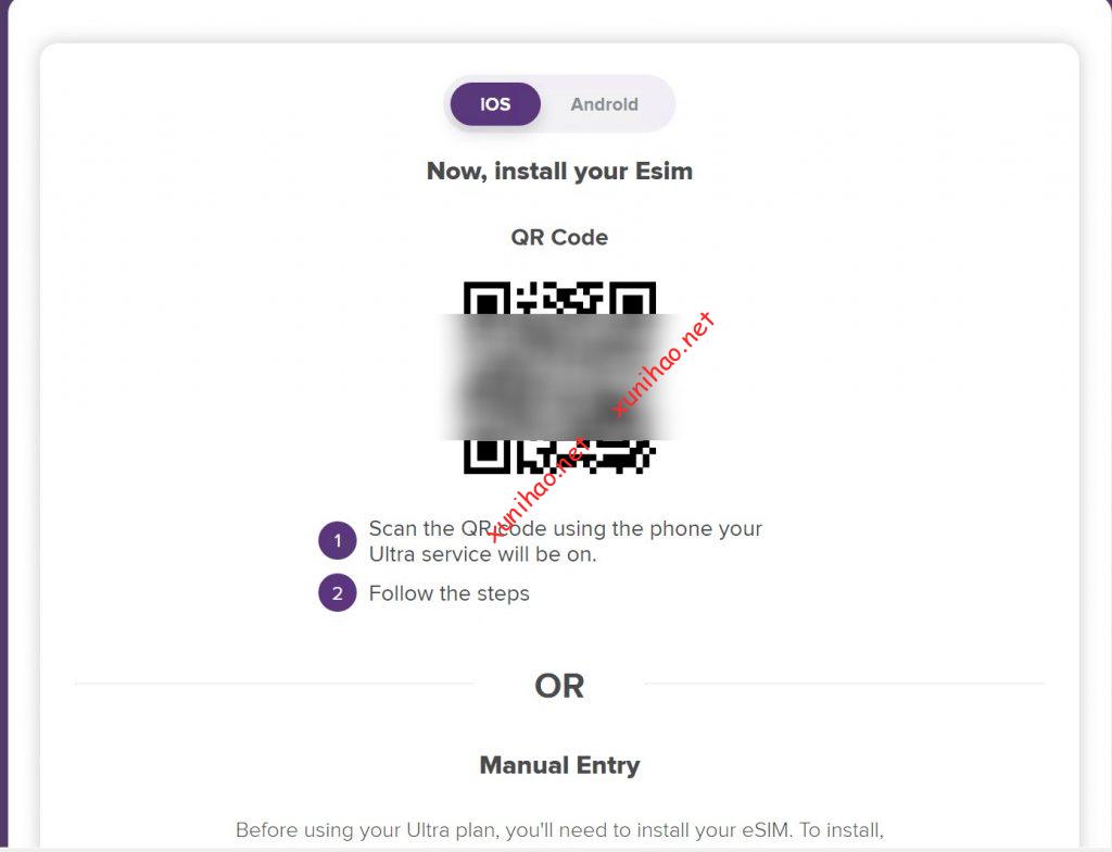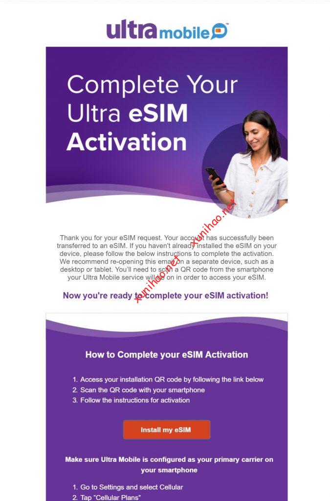 目前还只是处于初期。不支持使用app写到手机eSIM模块,需要电话联系客服,让客服将ultra mobile实体卡转为eSIM。收取手续费3美金。然后确认你的邮箱,发一个二维码给到你ultra mobile账号登记的邮箱。