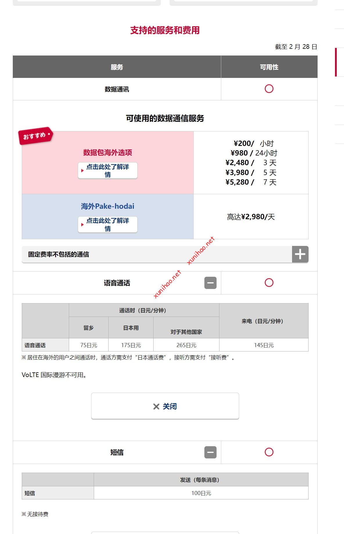 然后收到了一条短信告知收短信免费,有一个980日元24小时的漫游数据计划(没有说明多少流量和会不会降速),还没看到详情。所以没有去尝试开通。