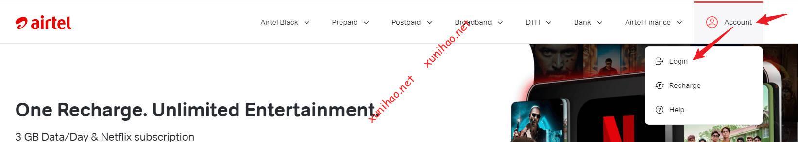 打开并登录Airtel官网