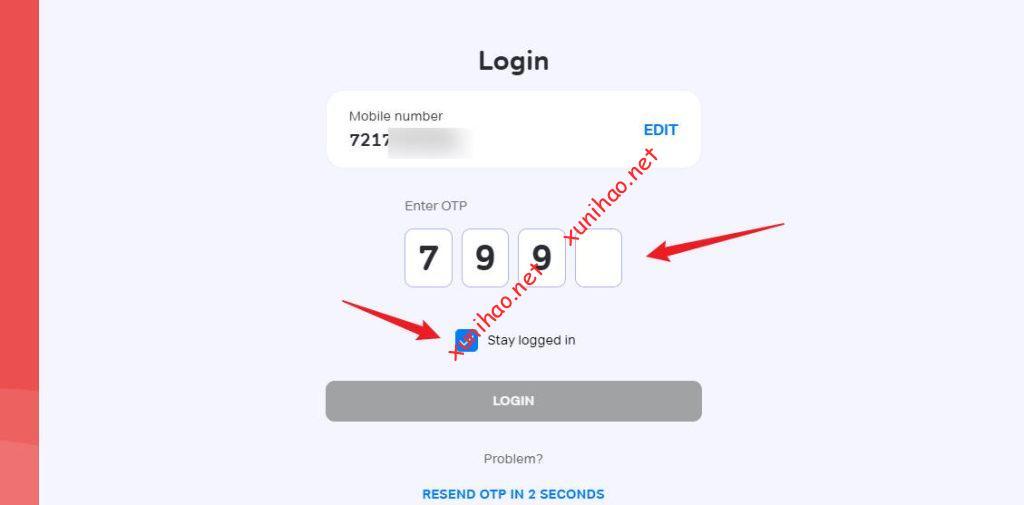 手机安装好app后打开,输入印度号码点击发送OTP,验证码收到后填进去自动验证并登录。