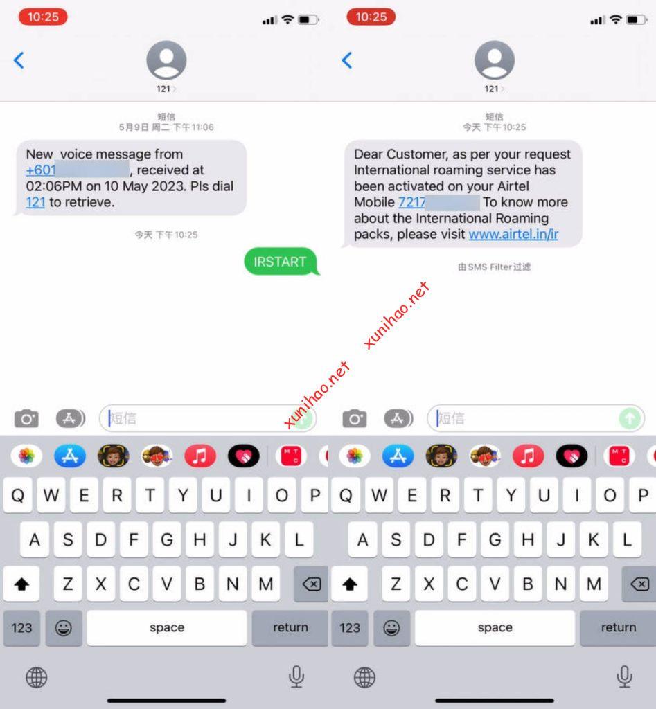 这时就需要手动发送短信IRSTART到121,开启国际漫游服务,消耗余额来享受全部漫游功能。