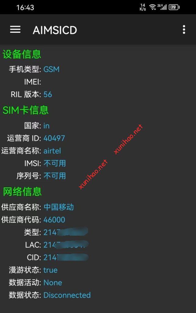 印度Airtel预付卡在中国漫游走中国移动基站信号