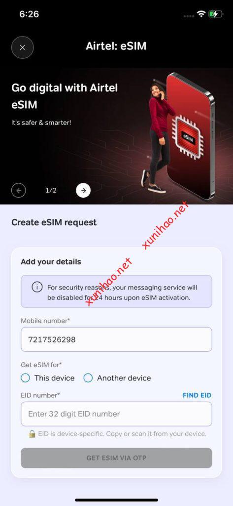 印度Airtel实体卡转换为eSIM