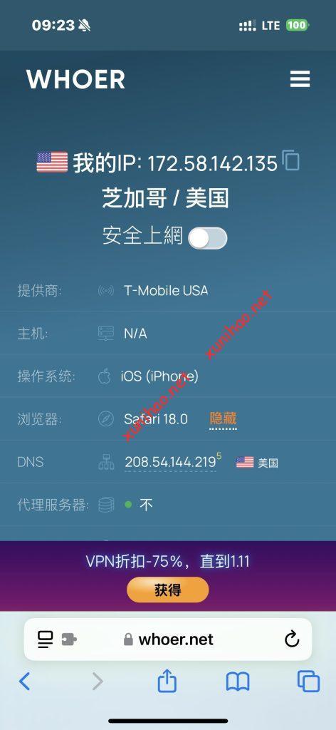 通过whoer.net查询本机ip172.58.142.135,开关飞行模式后2位会变化,与虚拟号之前介绍的t-mobile后付卡postpaid T-Mobile的Global Plus 15GB一样,但是t-mobile的Magenta套餐加上这个全球漫游包税后将近90刀了,且不说需要找美国当地的留学生代开代缴月租。号码转出要得到组长允许。