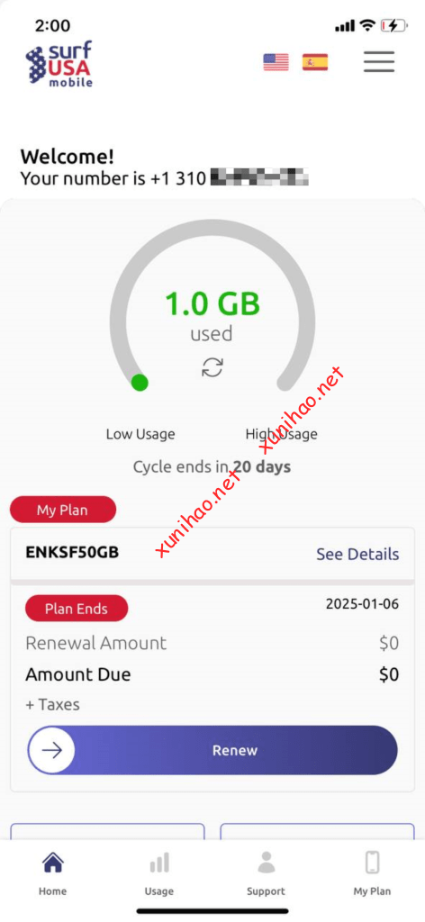 虚拟号实际使用过程中发现这张卡如果没有在月租到期之前续费下个月月租,就无法自己续费,没有缓冲期。过期了只能通过surf usa mobile代理商代缴月租或是去美国线下门店代缴。